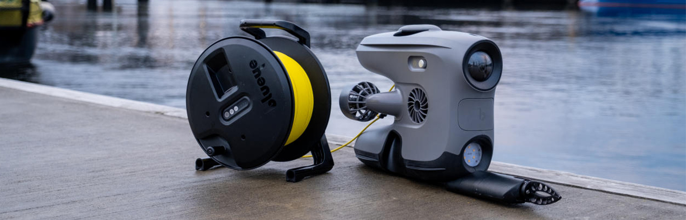 The advanced X3 ROV has no topside case or cables with the ROV cable reel having an integrated Wi-Fi and Bluetooth hub for vehicle control, viewing and recording via iOS or Android mobile devices with the Blueye app. The underwater vehicle is piloted with a hand held controller removing the need to carry bulky topside cases around remote locations, hazardous sites and on vessels. The lack of topside cabling means there are no trip hazards again improving work site safety.